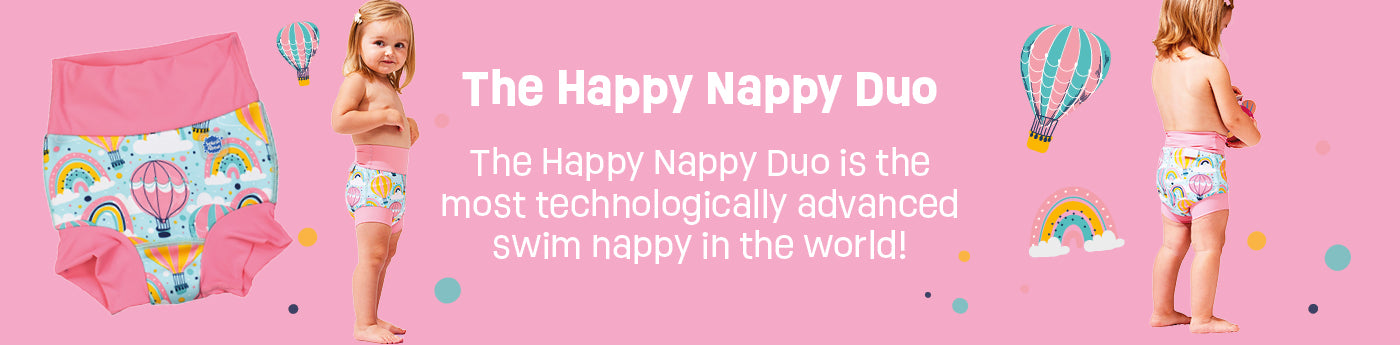 The Happy Nappy Duo™ is approved by swim schools as a double layer system, therefore there is no need for any other swim nappy to be worn underneath. Not only does this mean it is better value for money, it also means that you can ditch disposable nappies that are bad for the environment and that can carry viruses into changing rooms and bins