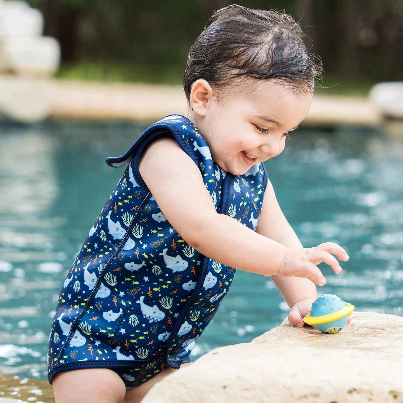The BabyWrap is an original Splash About invention designed to keep babies warm by maintaining their core temperature in the water. It is fully adjustable and fastens securely for a perfect fit every time. Made from soft 2mm neoprene, it opens completely flat, making dressing and changing as easy as possible—an ideal wetsuit for wriggly babies and toddlers.