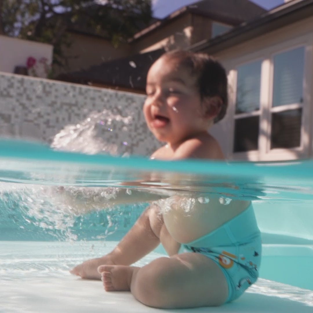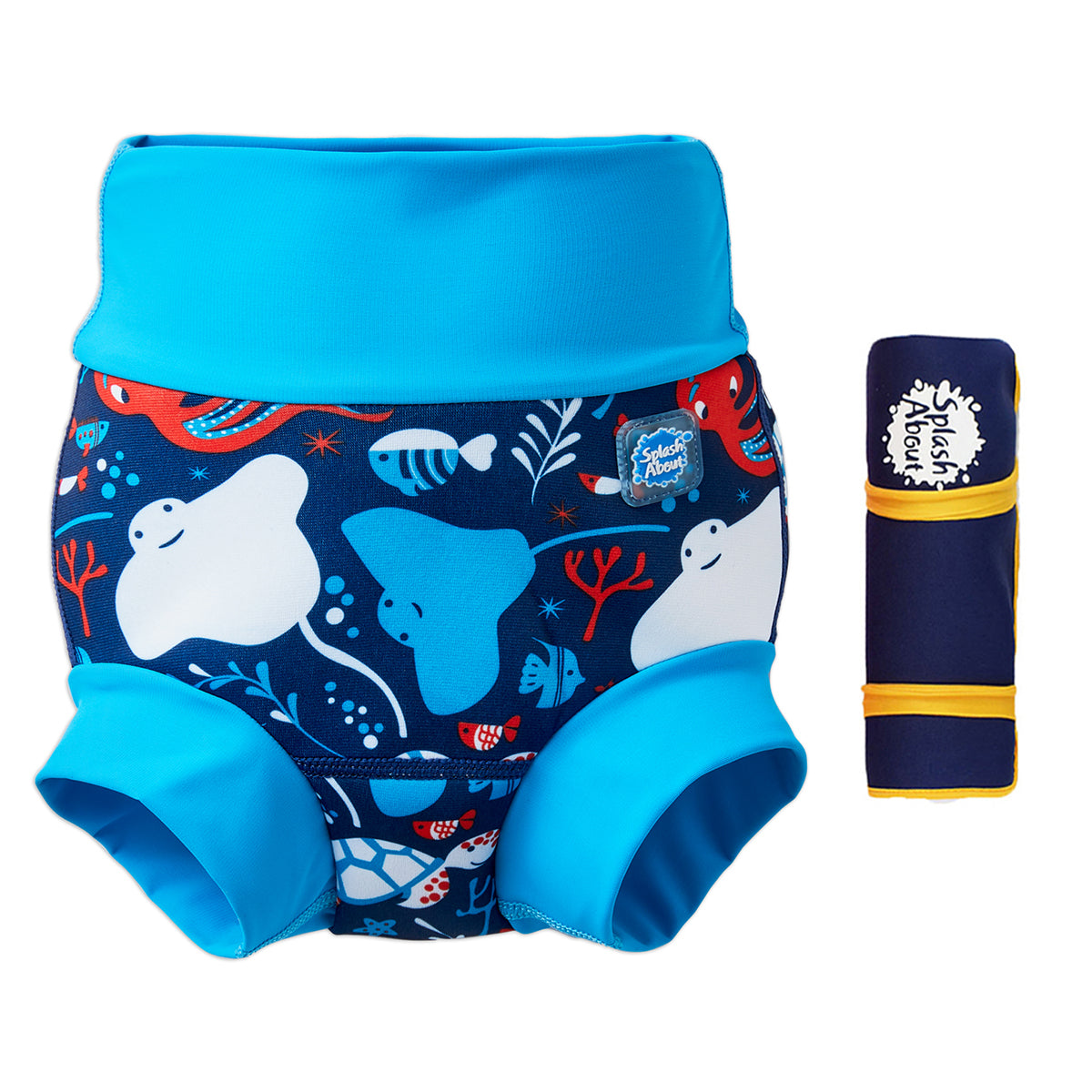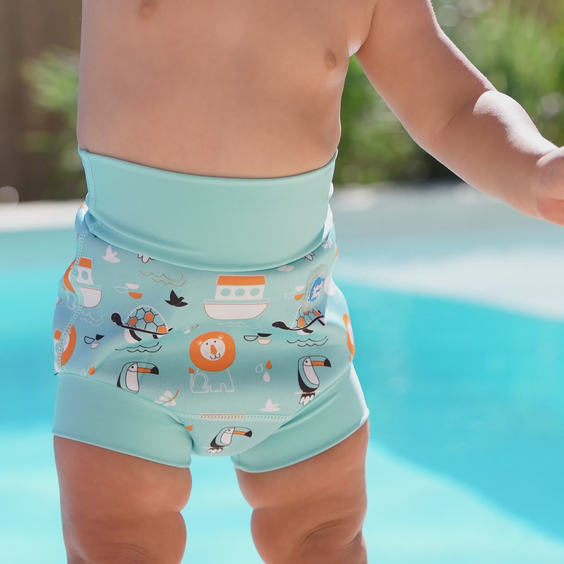 The Happy Nappy™ from Splash About is an innovative reusable swim nappy that reliably protects against faecal leaks. Ergonomically designed, the Happy Nappy™ is shaped to cup baby’s bottom to prevent any gaping, whilst specialist waist and thigh ribs fit snugly, to form a seal that prevents any solids leaking out into the pool.