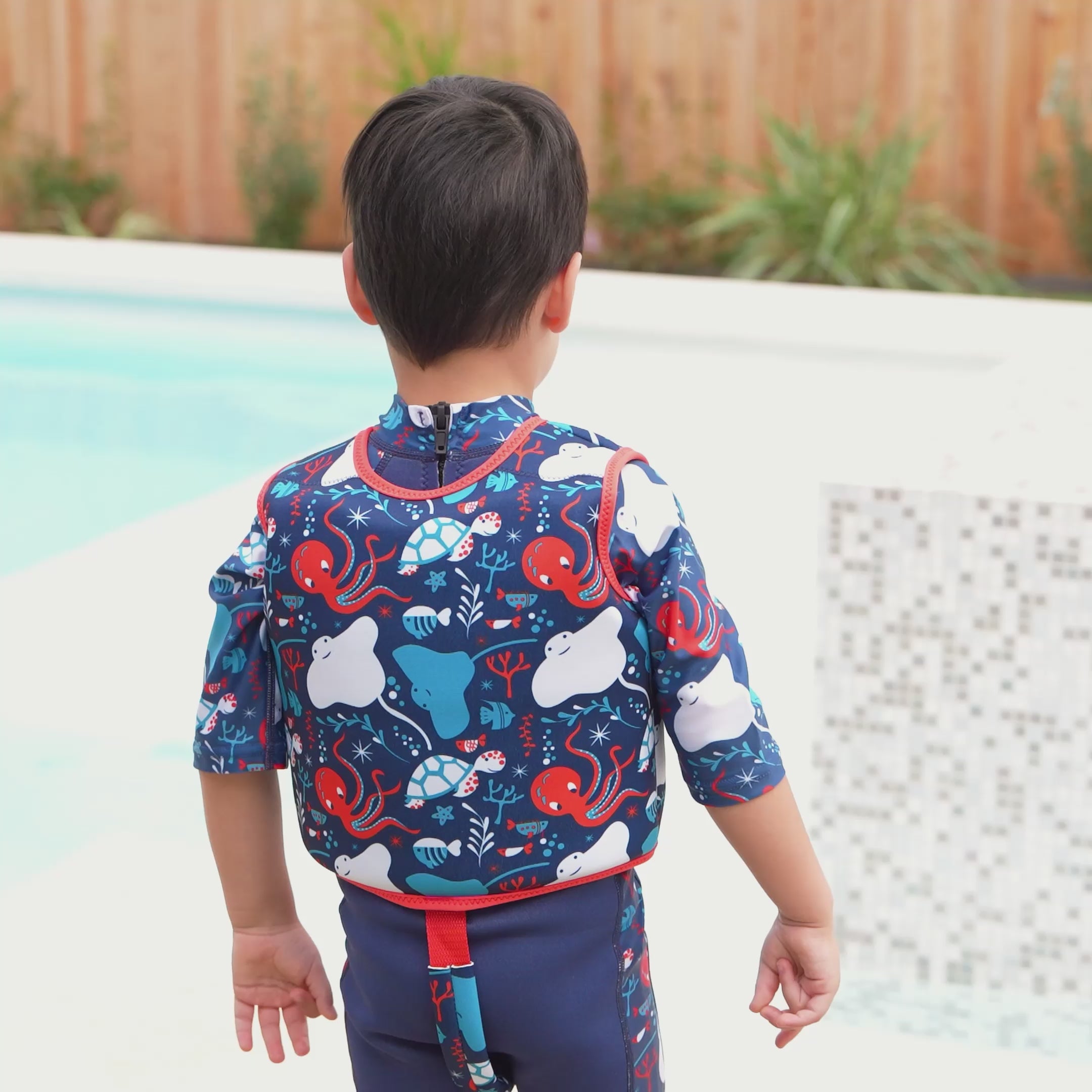 Dive in, in our Under the Sea Swim Vest. Featuring playful sea friends including Turtles, Rays and our shy octopus, this is the perfect design for your little explorer.