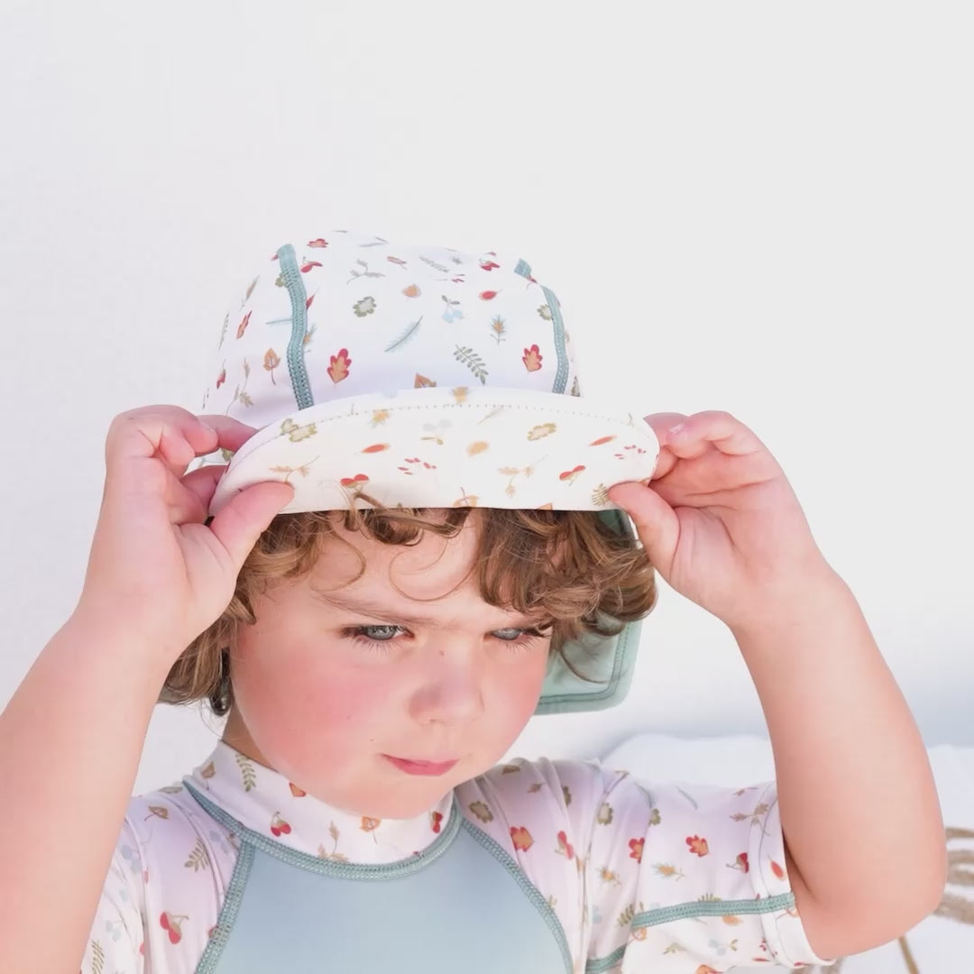 Protect little heads from the sun in these lightweight, quick drying legionnaire sunhats. Designed to be worn in and out of water, they are elasticated to fit the head without slipping. A peak helps to protect eyes from the sun, whilst the fabric at the back is long to cover the back of the neck, keeping children cool and sun protected. Available in all of our best-selling designs in a range of sizes from 1 to 6 years.