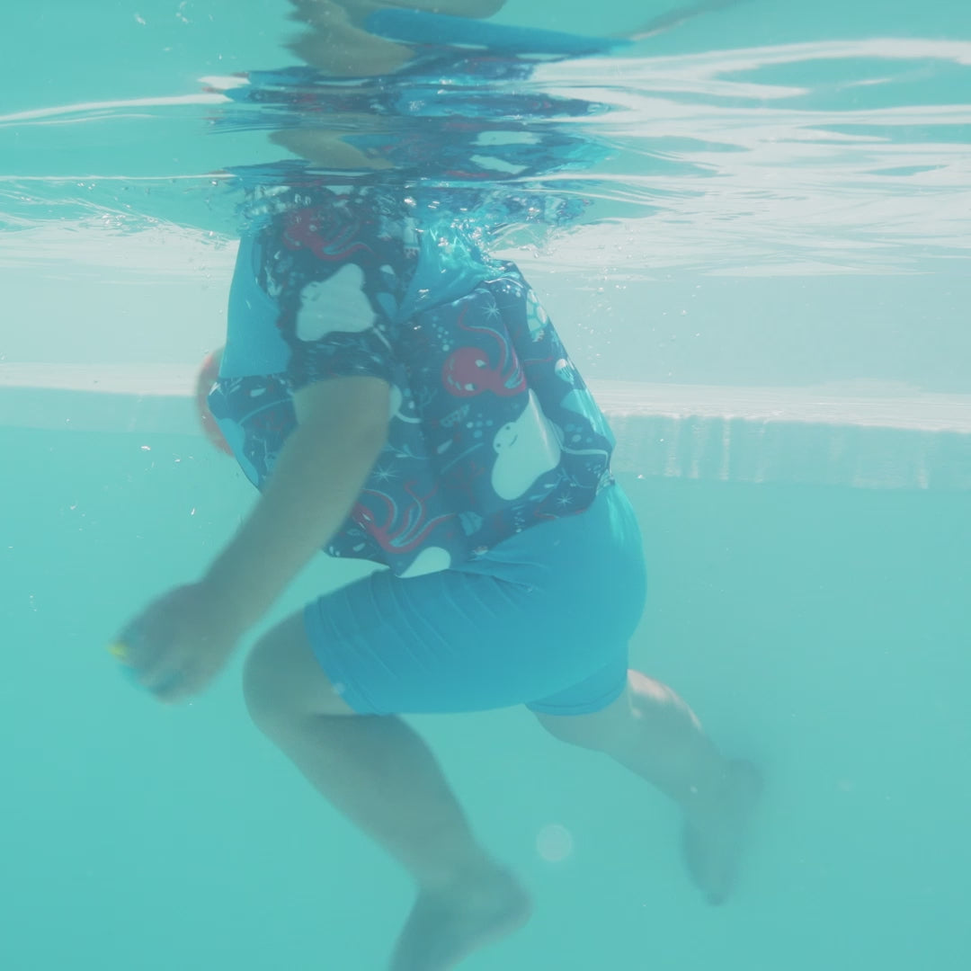 The adjustable buoyancy system is explained in detailed instructions that come with the Sleeved Floatsuit, to ensure a safe and fun swimming experience for you and your child.