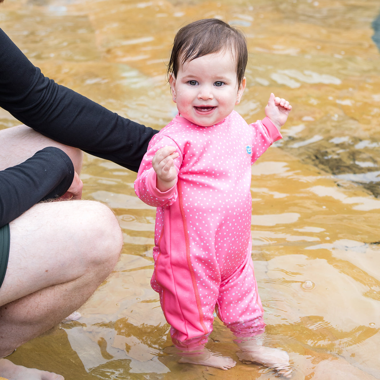 The Pink Dotty collection is ideal for holidays, swimming lessons and sunny days at the beach or pool. Whether your toddler is paddling in the shallows or learning to swim, this girls' polka dot swimwear offers comfort and cuteness in every stitch.