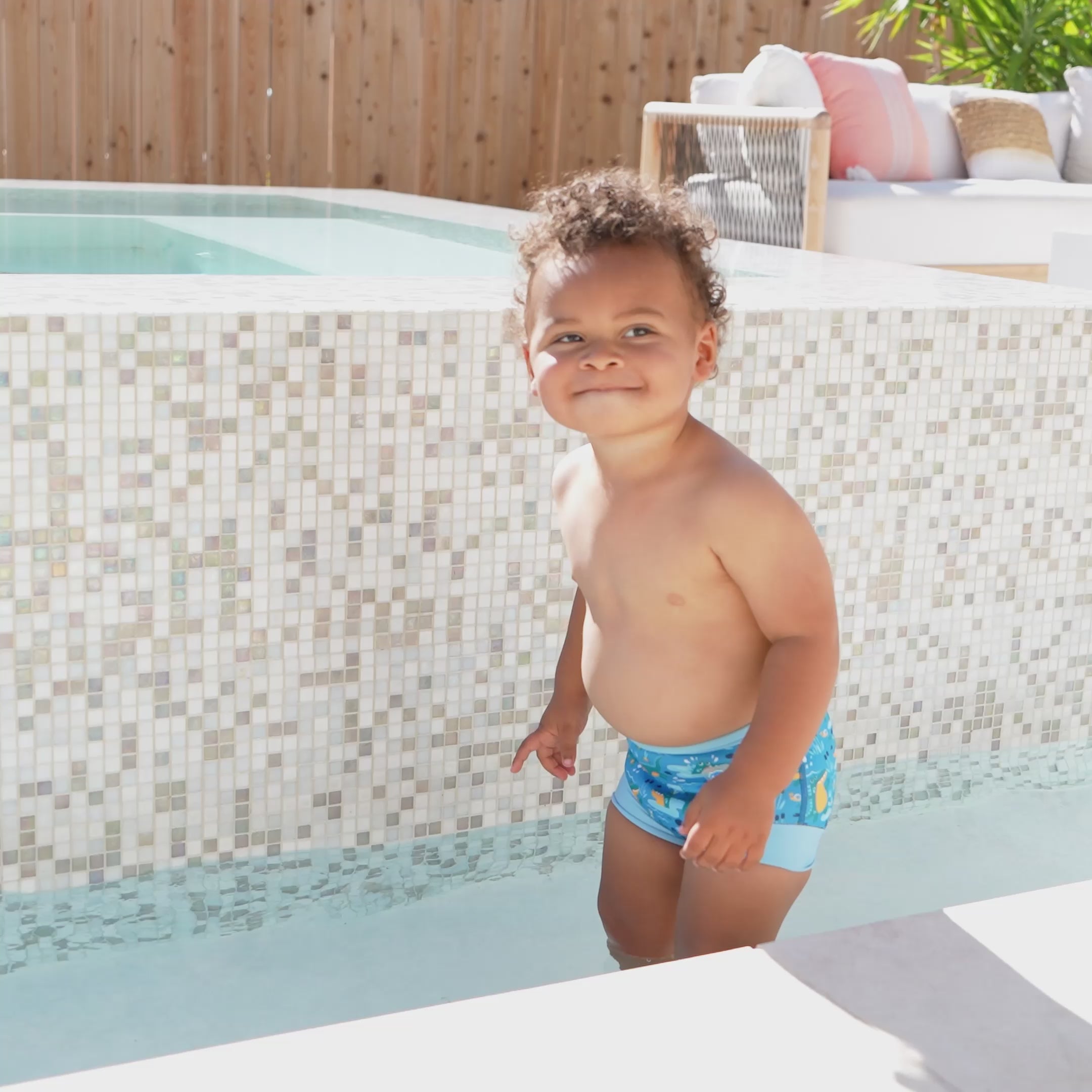 The Happy Nappy™  from Splash About is an innovative reusable swim nappy that reliably protects against faecal leaks. Ergonomically designed, the Happy Nappy™  is shaped to cup baby’s bottom to prevent any gaping, whilst specialist waist and thigh ribs fit snugly, to form a seal that prevents any solids leaking out into the pool.