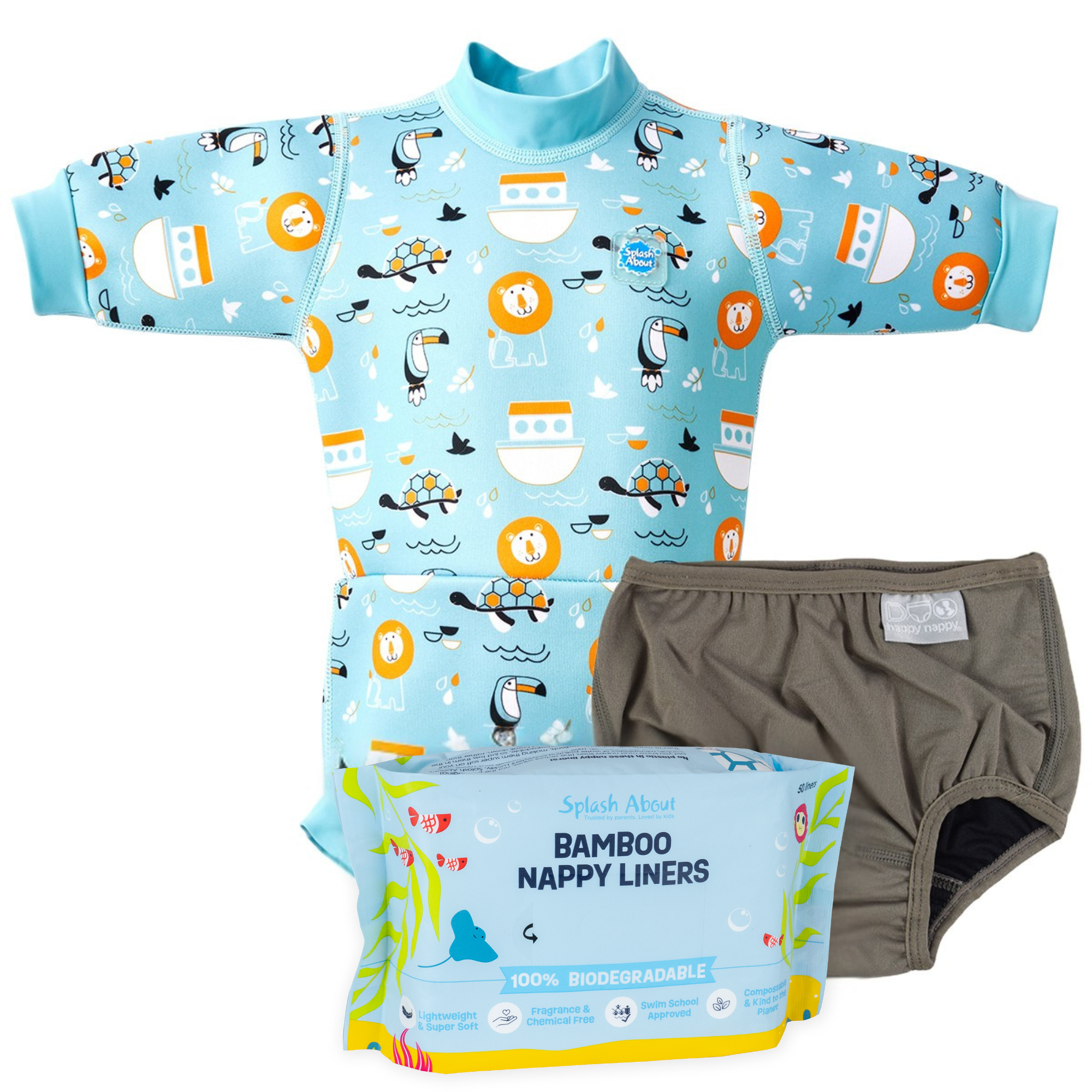 2-in-1 baby wetsuit with built in swim school approved Happy Nappy™