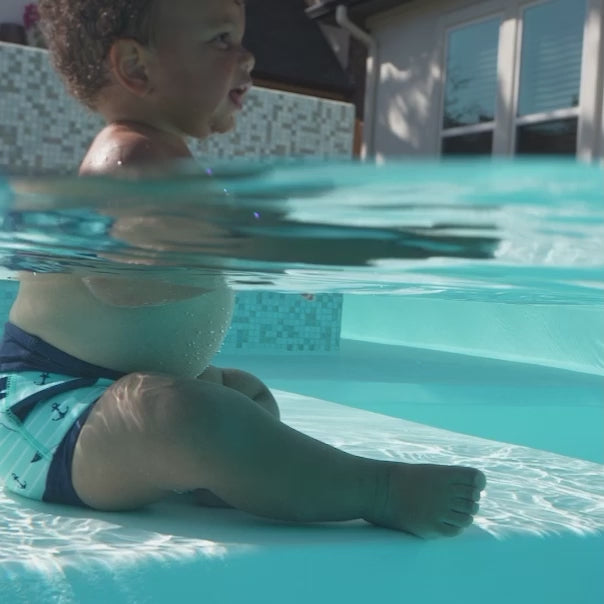 The Happy Nappy™  from Splash About is an innovative reusable swim nappy that reliably protects against faecal leaks. Ergonomically designed, the Happy Nappy™  is shaped to cup baby’s bottom to prevent any gaping, whilst specialist waist and thigh ribs fit snugly, to form a seal that prevents any solids leaking out into the pool.