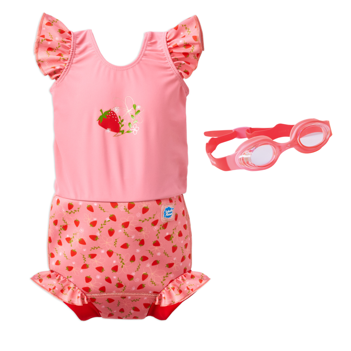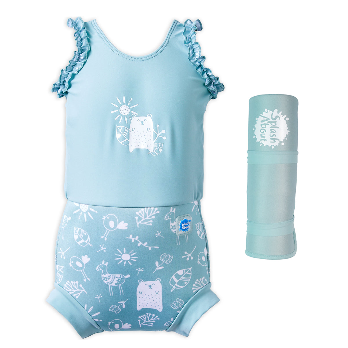 Swimming costume for babies featuring an improved shape neoprene Happy Nappy™ for reliable leak protection